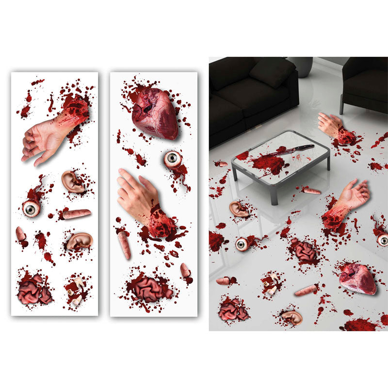 Ogni foglio include braccia mozzate, orecchie, dita, cervelli, cuori, occhi e altri organi insanguinati che sembrano appena usciti da un film horror. Il loro design iperrealistico con macchie di sangue aggiungerà un effetto gore incredibile su pareti, porte, finestre o persino mobili.