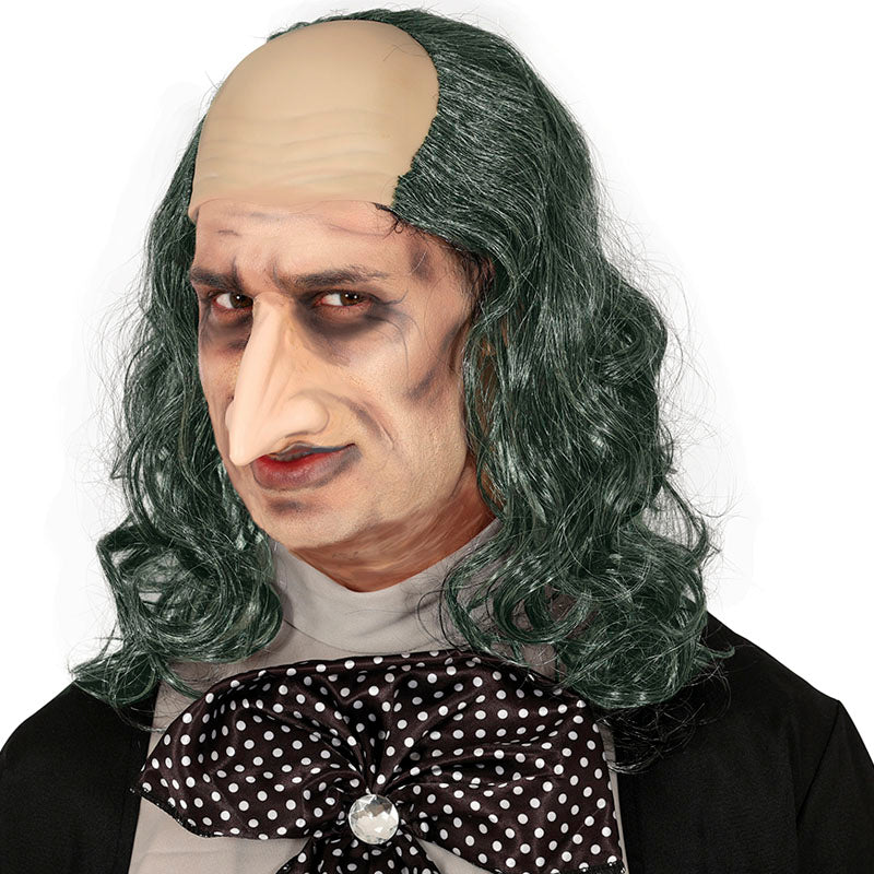 - Maschera completa di calva con melena scura tipo Pinguino Batman