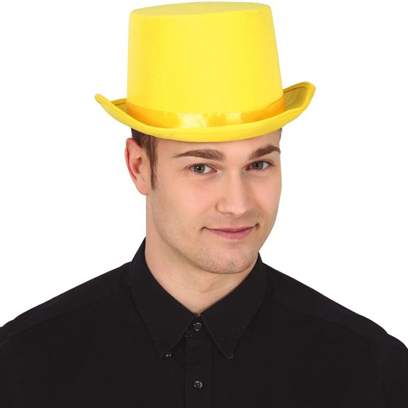 Cappello a cilindro Giallo Deluxe è il tocco originale perfetto per completare il vostro costume in modo sorprendente e colorato in qualsiasi evento in maschera, carnevale o festa in costume