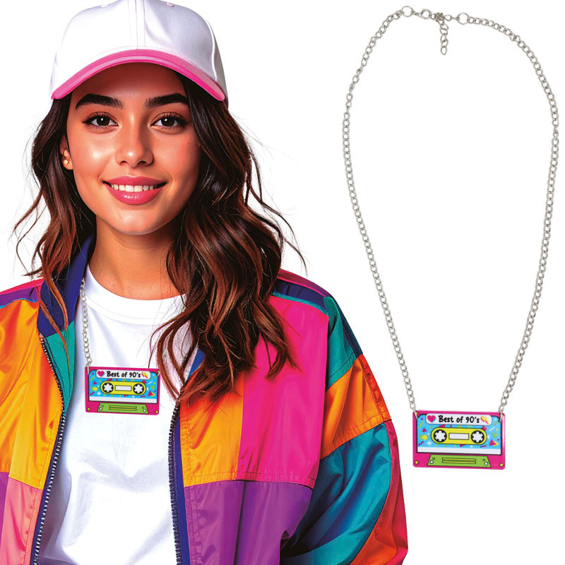 Collana Cassetta è il tocco originale perfetto per completare il vostro costume in modo sorprendente e colorato in qualsiasi evento in maschera, carnevale o festa in costume.