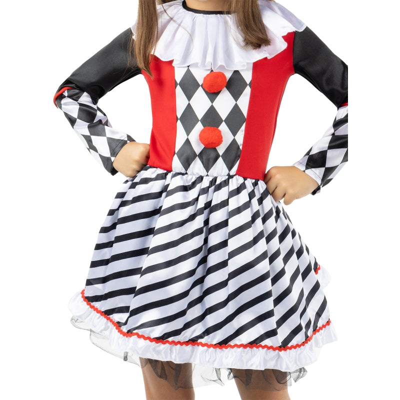 - Abito con stampa classica da arlecchino e dettagli rossi