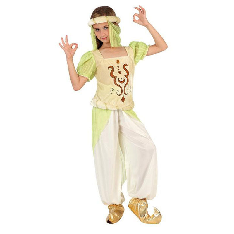 Il costume da ballerina araba comprende: camicia, pantaloni, copricapo e copriscarpe.