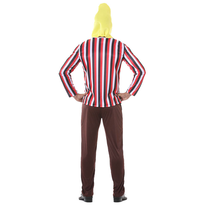 Il costume per imitare il burattino dello spettacolo per bambini di Sesamo apriti Bert y Ernie per uomo comprende: camicia, pantaloni e cappuccio.