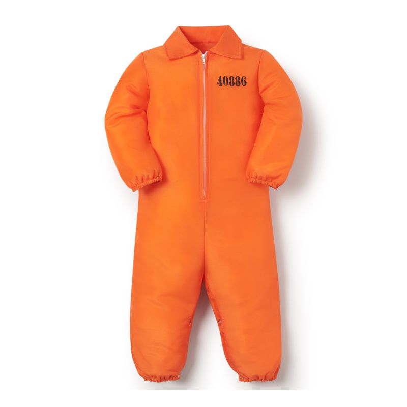 Il singolare costume da Carcerato per neonati comprende: Tuta | Questo travestimento neonato da Prigioniero Arancione è disponibile in 3 diverse misure