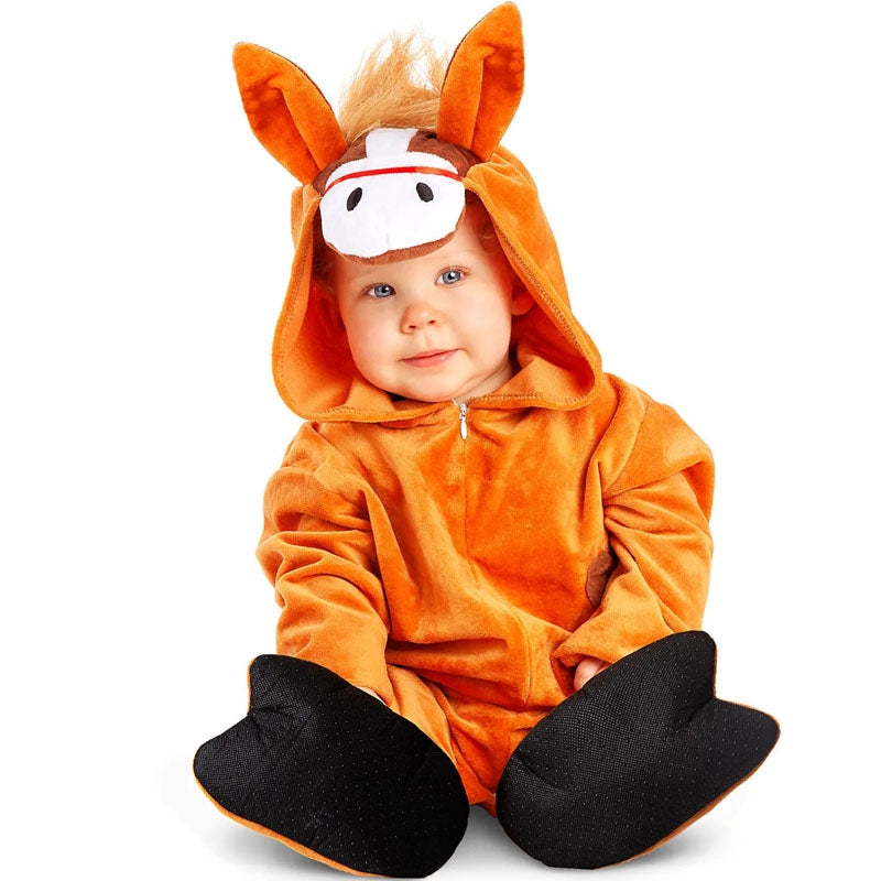 Il singolare costume da Cavallo a sorpresa per neonati comprende: Tuta con cappuccio, stivaletti e coda con chip sonoro | Questo travestimento neonato da Cavallo è disponibile in 2 diverse misure