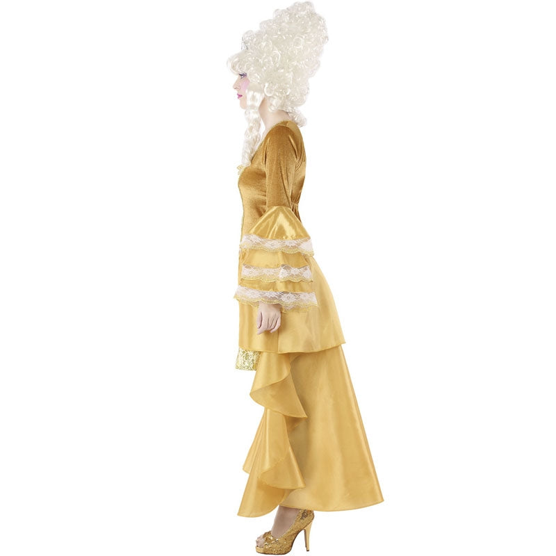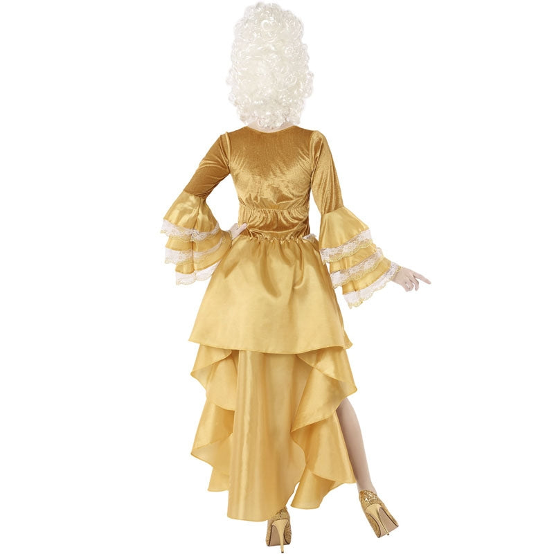 Il costume adulto che imita una cortigiana epoca da donna color oro include: vestito | Questo abito da donna in oro Cortigiana è disponibile in 3 diverse misure