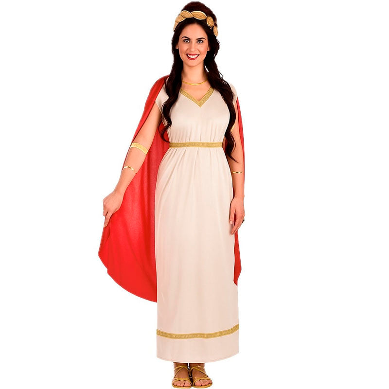 Il costume da dea greca dell'Olimpo per donna include: Vestito e mantello.
