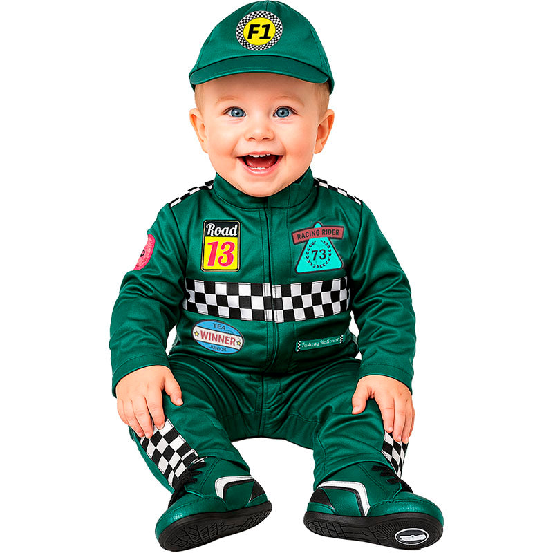 Il singolare costume da Pilota da corsa verde per neonati comprende: tuta e berretto | Questo travestimento neonato da Pilota di auto bellissimo è disponibile in taglia unica