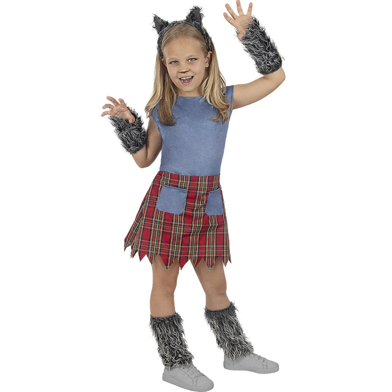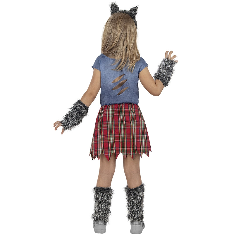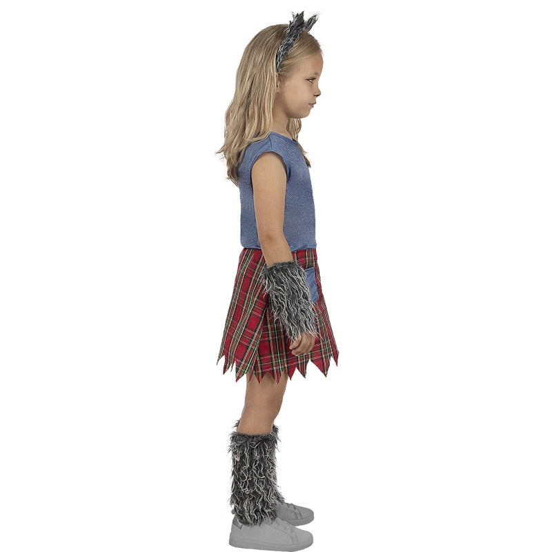 L'originale costume da Donna Lupo Mannaro per bambine comprende: Abito, scaldamuscoli, manicotti e cerchietto | Questo travestimento bambina da Donna lupo selvaggia è disponibile in 4 diverse misure