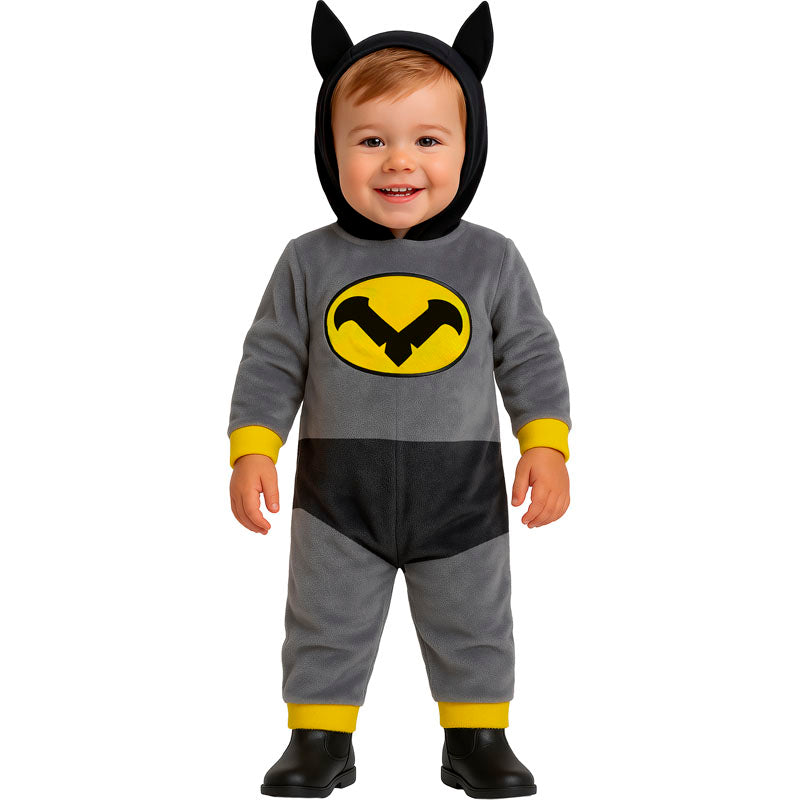 Il singolare costume da eroe Batman per neonati comprende: tuta con cappuccio | Questo travestimento neonato da supereroe pipistrello è disponibile in 2 diverse misure