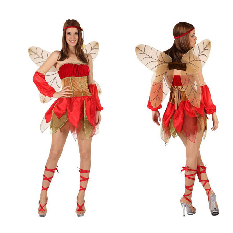 Il costume da fata della foresta d'autunno per donna comprende: vestito, maniche, ali e copricapo.