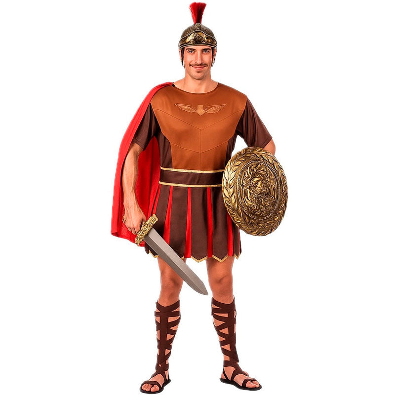 Il costume da guerriero romano per uomo comprende: Tunica, mantello, cintura e parastinchi.