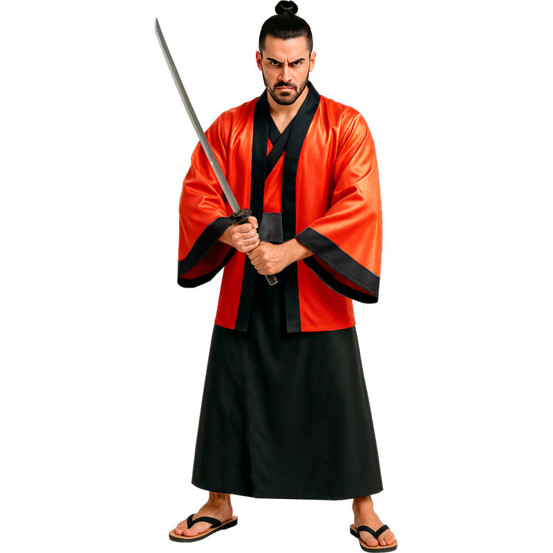 Il singolare costume da Guerriero Samurai per uomini comprende: vestito, giacca e cintura | Questo travestimento uomo da Samurai tradizionale è disponibile in 2 diverse misure