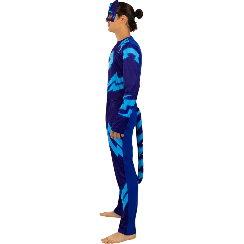 Questo esclusivo costume da Gufetto di Pj Masks per uomini contiene: Tuta con coda e mascherina | Questo costume da uomo che imita Eroe felino blu della squadra in pigiama è disponibile in 3 taglie diverse