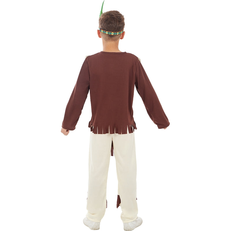 Il costume esclusivo di Indiano Sioux per bambini include: Maglietta, pantaloni e fascia | Questo costume per bambini che imita Guerriero indiano Sioux è disponibile in 4 taglie diverse.