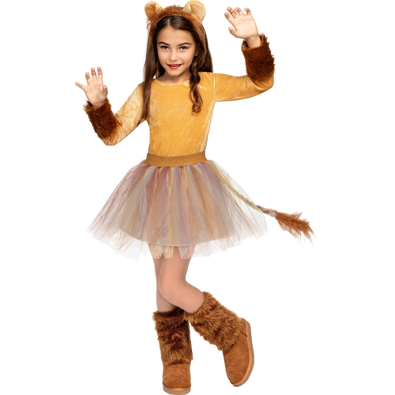L'originale costume da Leonessa per bambine comprende: Maglietta, tutù, scaldamuscoli e cerchietto | Questo travestimento bambina da Leonessa selvaggia con criniera è disponibile in 4 diverse misure