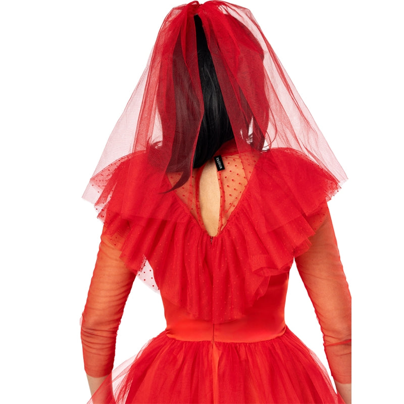 L'originale travestimento Halloween da Lydia Deetz Beetlejuice per donne comprende: abito da sposa e velo rossi e appartiene al merchandising ufficiale di Warner Bros. | Questo costume terrificante donna Lydia Deetz, la sposa gotica di Beetlejuice è disponibile in 3 diverse misure