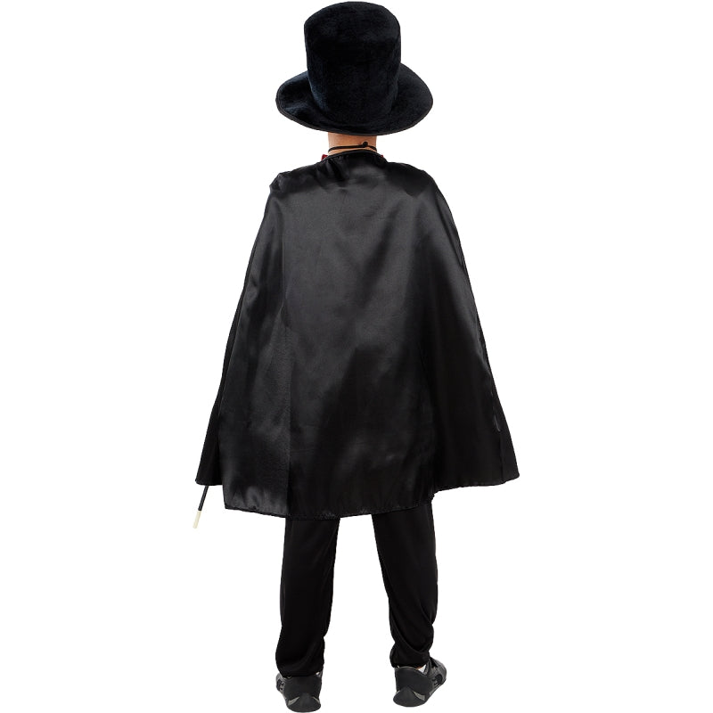 Il costume esclusivo di Mago Abracadabra per bambini include: Pantaloni, gilet, papillon, mantello e cappello | Questo costume per bambini che imita Mago magico Abracadabra è disponibile in 4 taglie diverse.