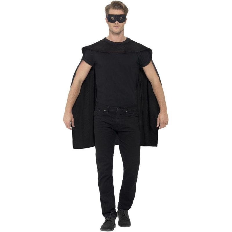 Il singolare costume da Mantello nero da supereroe per uomini comprende: mantello e maschera | Questo travestimento adulto da mantello da supereroe con maschera è disponibile in 1 misure