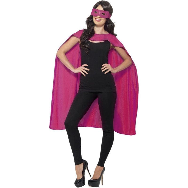 Il singolare costume da Mantello rosa da supereroe per uomini comprende: mantello e maschera | Questo travestimento adulto da mantello da supereroe con maschera è disponibile in 1 misure