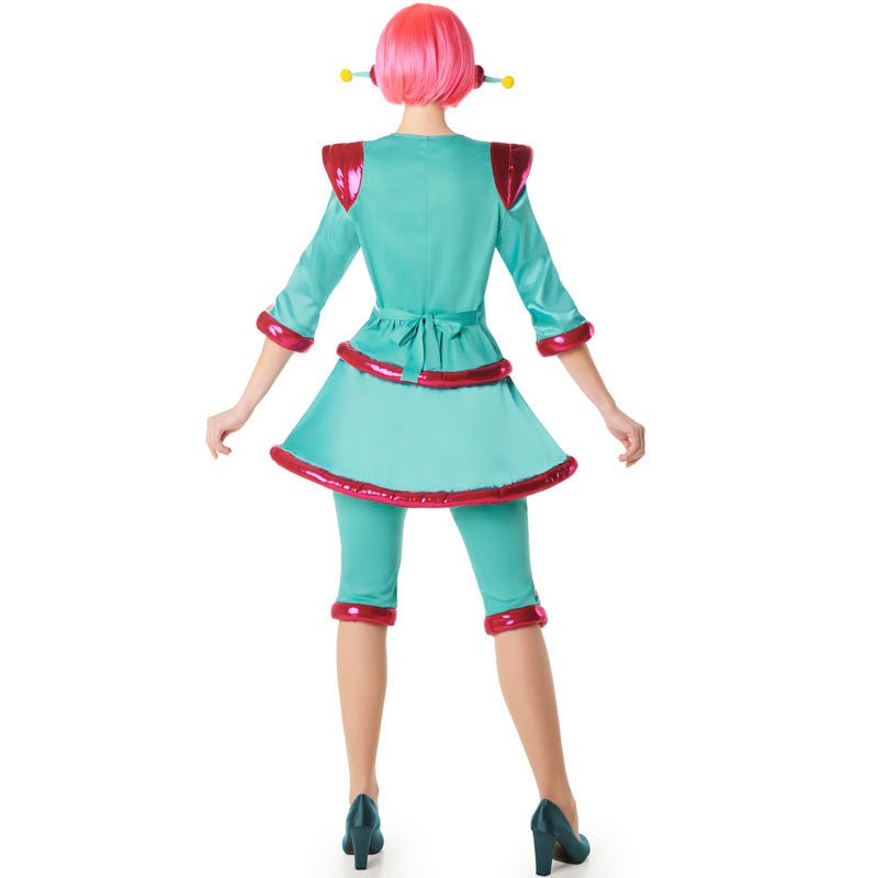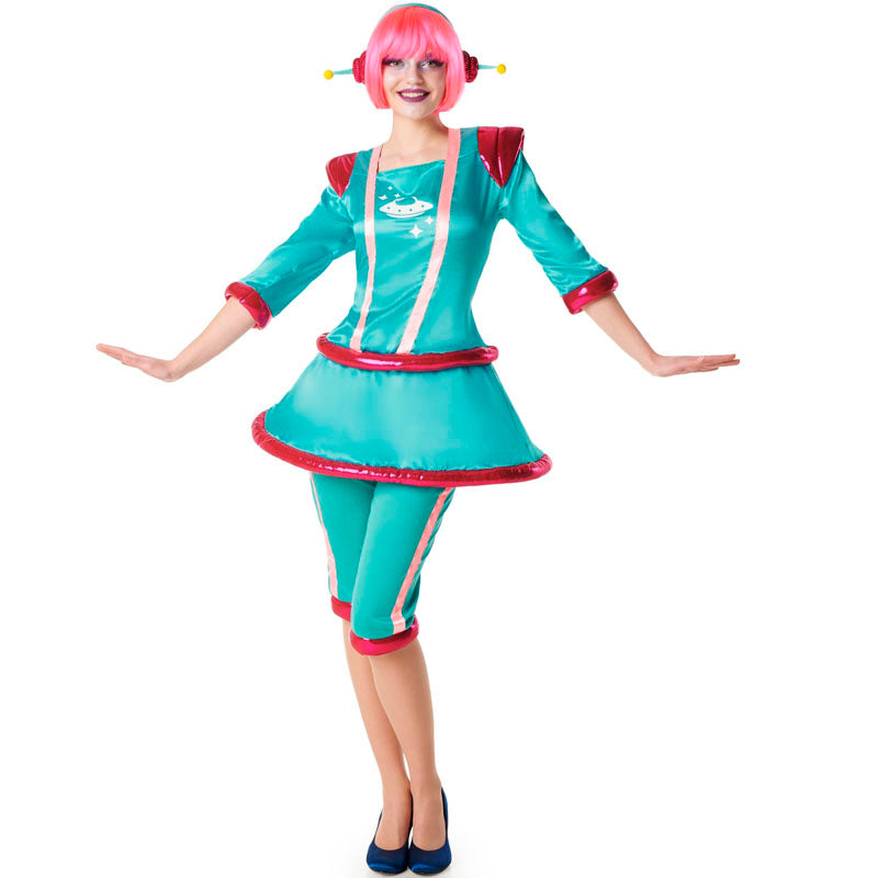 Lanciati e conquista la pista con il costume da Marziana verde turchese. Dai un tocco extraterrestre al tuo Carnevale quest'anno e fai in modo che ogni minuto sia di un altro pianeta. Se vuoi trionfare alla tua festa in maschera, questo è il look che ti porterà fino all'infinito (e un po' più in là!).