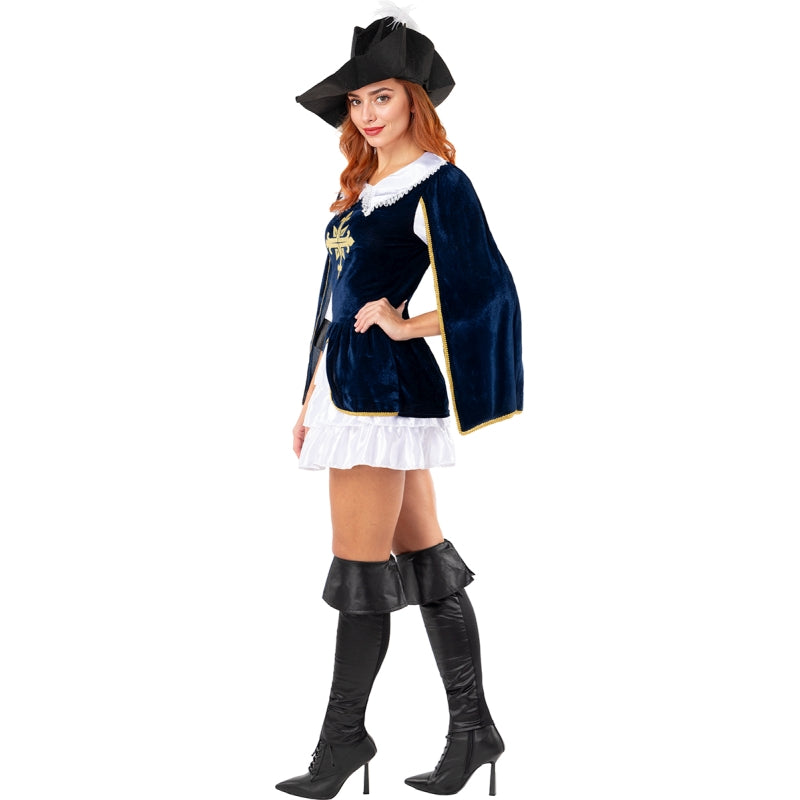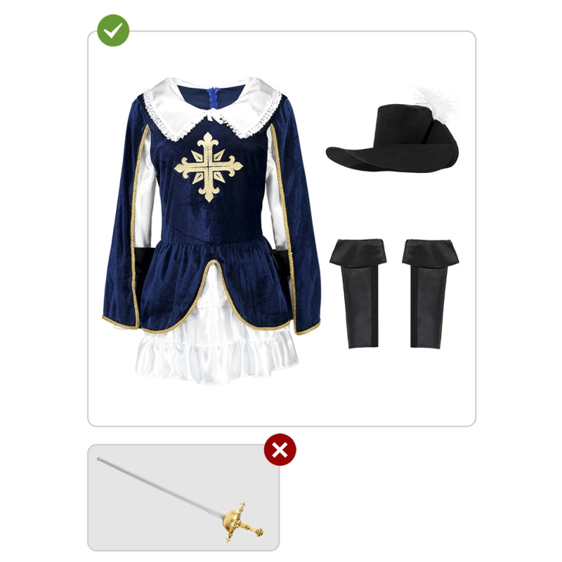 Fai il passo: Mostra la tua eleganza e vivi la tua avventura con il Costume di Moschettiera dell'Ordine per donna. Lascia un segno con la tua eleganza e sii sicura di indossare un costume che racconta una storia!