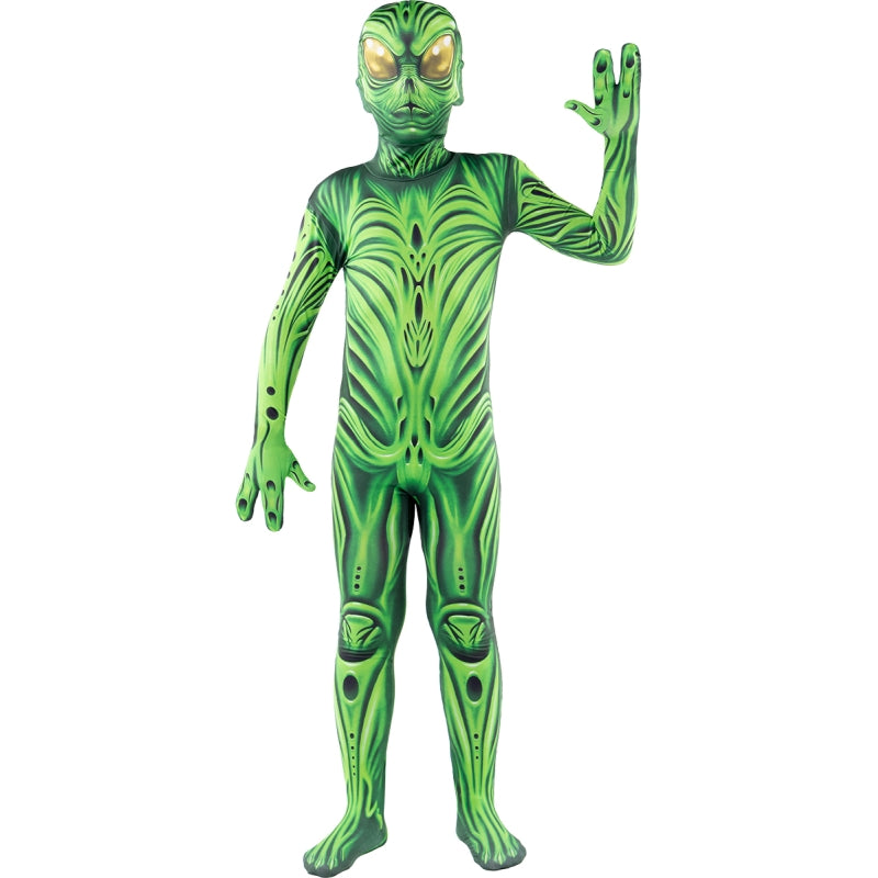 Costume da Mostro Extraterrestre per bambino con tuta intera e apertura sulla schiena. Disponibile in 3 taglie. Comodo e divertente, perfetto per Carnevale o feste a tema.