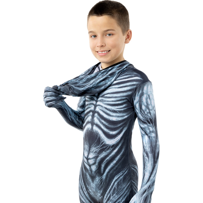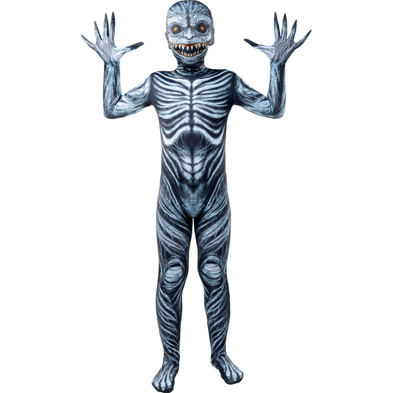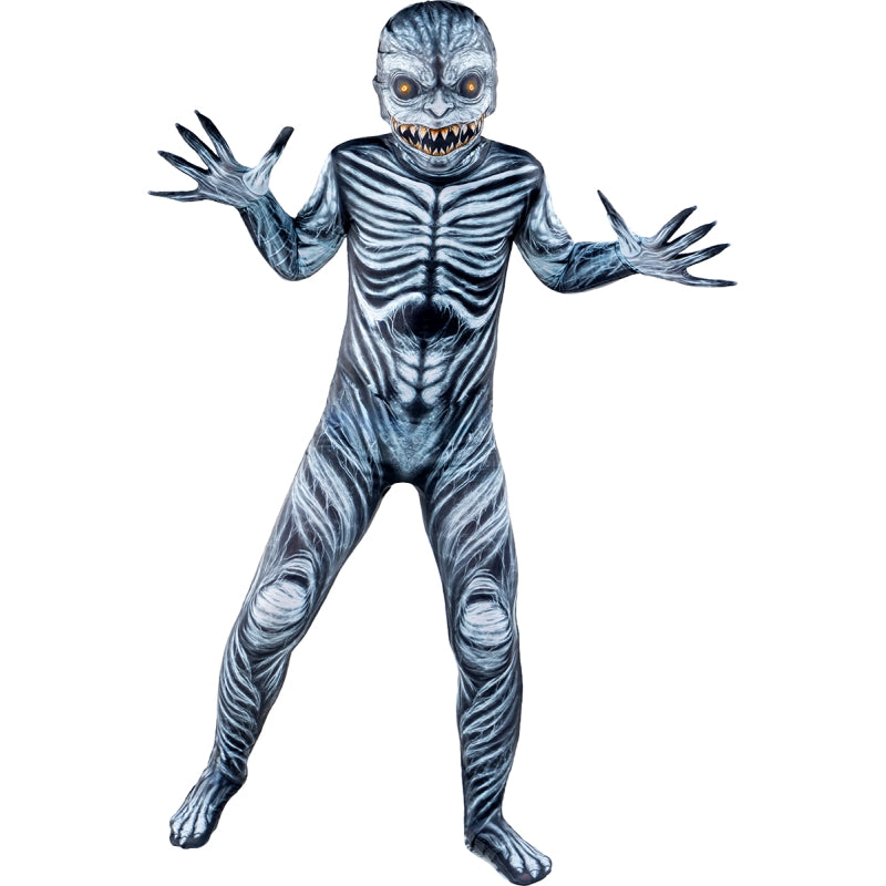 Costume da Mostro effetto seconda pelle per bambino con tuta intera e apertura sulla schiena. Disponibile in 3 taglie. Divertente, flessibile e comodo per giocare o travestirsi.