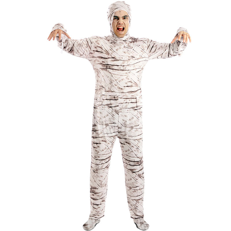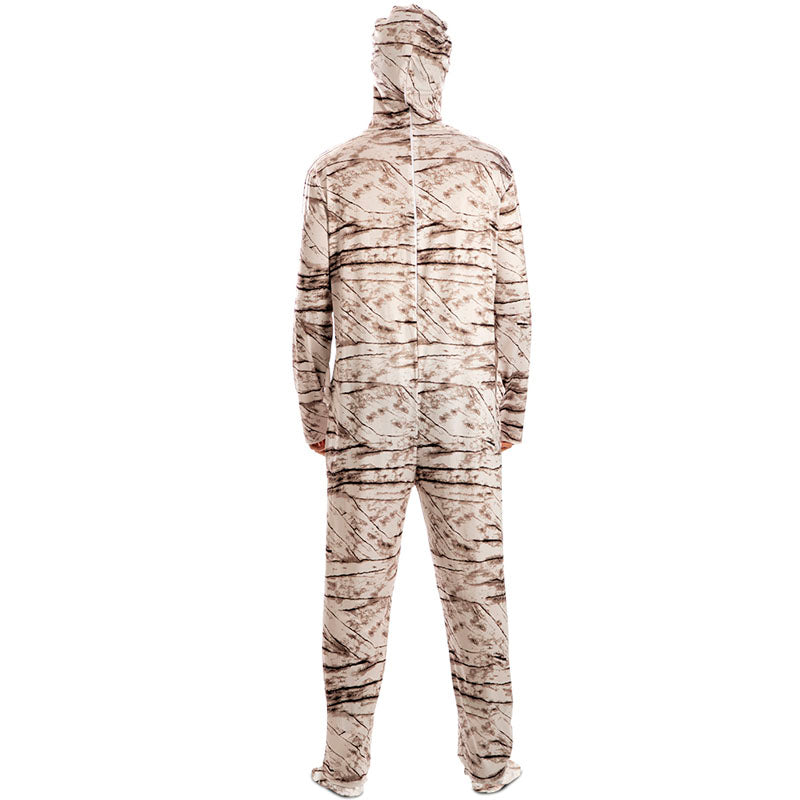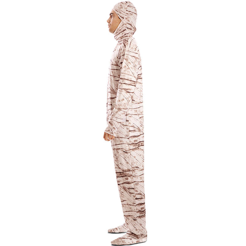Il costume di Halloween da mummia per uomo include: tuta con cappuccio | Disponibile in 3 taglie. Perfetto per un look egiziano spettrale.