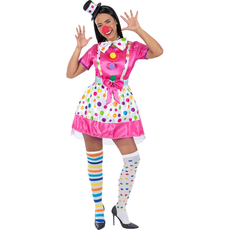 Questo esclusivo costume da Pagliaccia Happy per donne contiene: Abito, diadema e papillon | Questo costume da donna per trasformarti in personaggio festivo del circo con spirito giocoso è disponibile in 3 taglie diverse