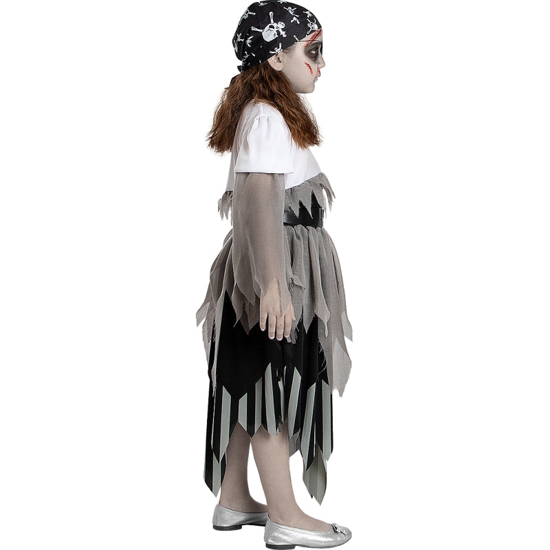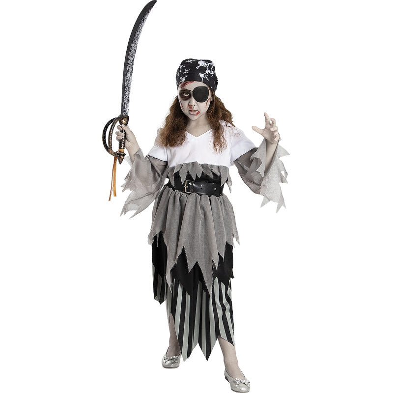 L'originale costume da Piratessa Zombie per bambine comprende: Abito, cintura e benda per l’occhio | Questo travestimento bambina da Pirati zombie non morta è disponibile in 4 diverse misure