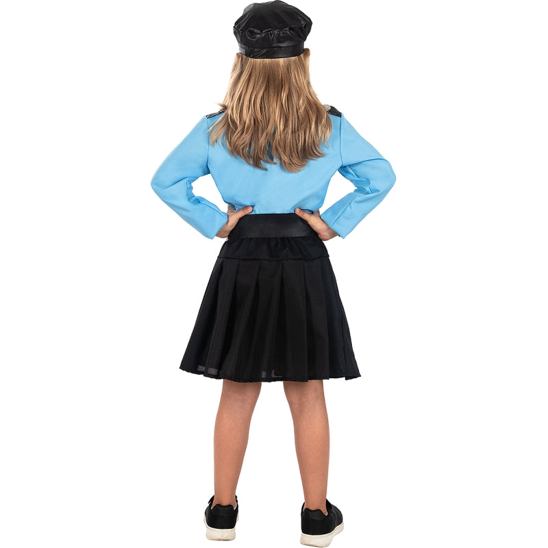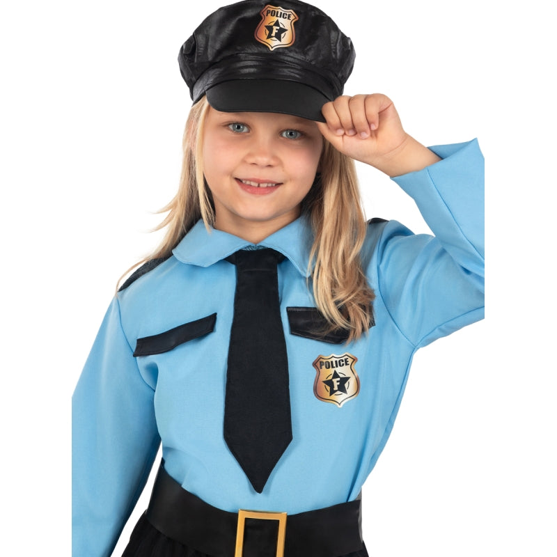 L'originale costume da Poliziotta Americana per bambine comprende: Gonna, maglietta, cappello, cravatta e cintura | Questo travestimento bambina da Poliziotta americana è disponibile in 4 diverse misure