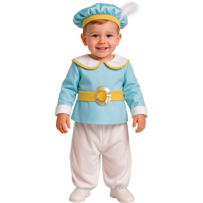 Abbiamo fatto in modo di avere tutto ciò che serve per trasformare il vostro neonato in Principe super originale e adorabile con questo simpatico costume da neonato. Se volete scattare delle foto divertenti da ricordare, o partecipare alla loro prima festa a tema vestiti da principe delle fiabe, con questo nuovo costume di Carnevale da neonato non passeranno inosservati. Composto da camicia con cintura, pantaloni, stivali e cappello e disponibile in 2 diverse dimensioni per soddisfare i piccoli di casa. Sicuramente l'idea del nuovo costume da baby Principe lascerà tutti a bocca aperta in occasione della sua prima festa di Carnevale, di un servizio fotografico, delle sfilate di fine anno all'asilo nido o semplicemente per andare incontro ai suoi genitori imitando il look di Principe Azzurro in modo realistico. Acquistate questo originale costume Principe da neonato comodamente da casa nel nostro negozio online.