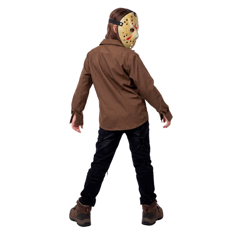 Il costume Halloween da Psicopatico Assassino Jason per bambini comprende: Camicia con finta t-shirt | Questo travestimento spaventoso bambino che imita a Jason Voorhees di Venerdì 13 è disponibile in 4 diverse misure