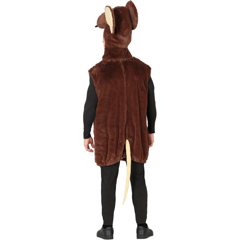Il singolare costume da Ratto marrone per uomini comprende: tuta con coda e cappuccio | Questo travestimento uomo da Roditore marrone è disponibile in taglia unica