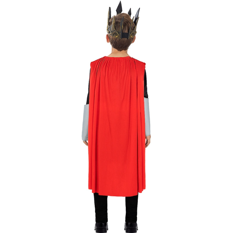 Il costume esclusivo di Re Artù classico per bambini include: Tunica con mantello, cintura, polsini e corona | Questo costume per bambini che imita Re Artù medievale classico è disponibile in 4 taglie diverse.
