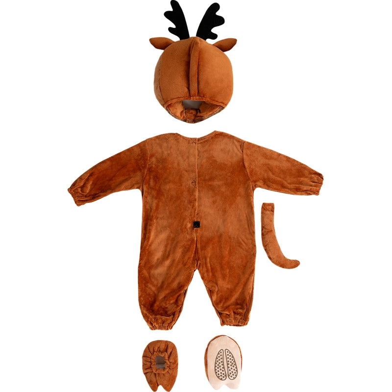 Il costume originale per neonati di Renna di Natale include: Tutina con bottoni a pressione, cappellino, corna, coda e copripiedi | Questo esclusivo costume per neonati, che imita un Renna di Babbo Natale, è disponibile in 3 diverse taglie.