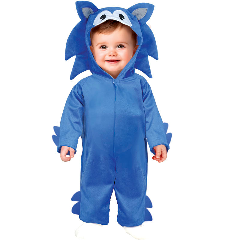 Il singolare costume da Riccio blu per neonati comprende: Tuta con cappuccio | Questo travestimento neonato da Riccio veloce dei videogiochi è disponibile in 2 diverse misure