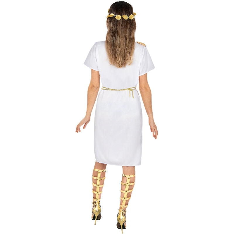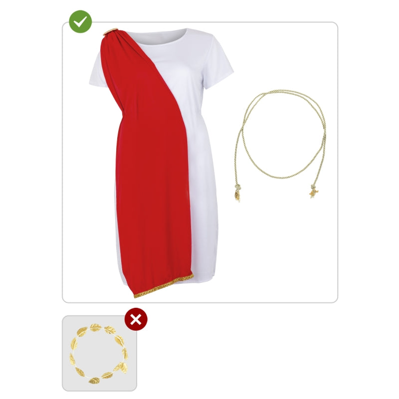 Questo esclusivo costume da Romana Corta per donne contiene: Tunica con stola e cintura | Questo costume da donna per trasformarti in dama dell'impero con tunica corta è disponibile in 4 taglie diverse