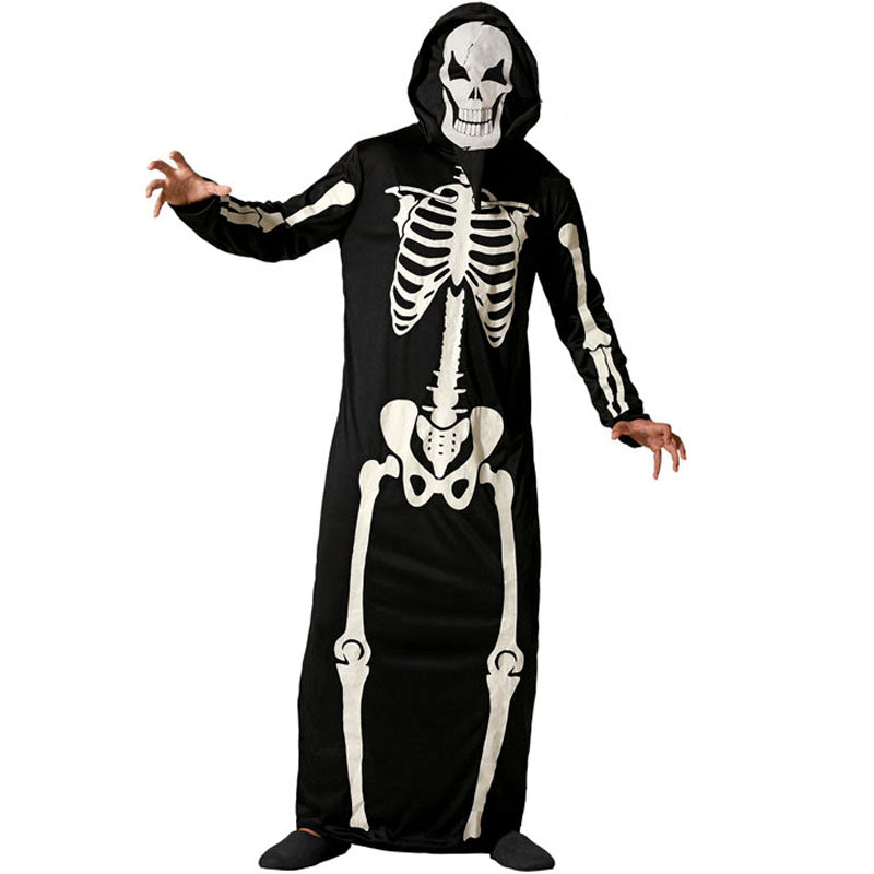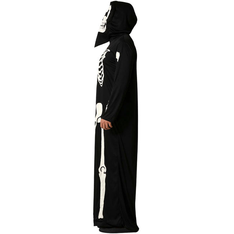 Il singolare costume Halloween da Scheletro Fosforescente per uomini comprende: tunica e maschera con cappuccio | Questo travestimento terribile uomo da Teschio che brilla è disponibile in 3 diverse misure