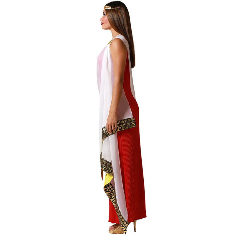 Include abito bianco con dettagli dorati e mantello coordinato, realizzato in tessuti leggeri e comodi per ottenere un'apparenza da senatrice romana impeccabile. Non include diadema, così puoi aggiungere i tuoi accessori preferiti. Disponibile in 4 taglie per adattarsi facilmente a tutte le silhouette.Perfetto per Carnevale, addii al nubilato o feste a tema