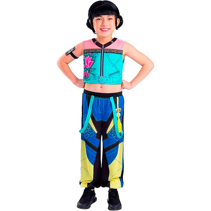 L'originale costume da Zoey del K-Pop per bambine comprende: Top, pantaloni e fascia da braccio | Questo travestimento bambina da Zoey la guerriera Kpop delle Demon Hunters è disponibile in 4 diverse misure