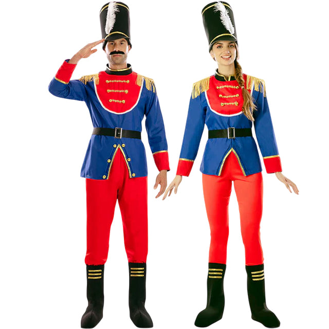 Il costume da Soldato giocattolo Schiaccianoci per uomo include: giacca, pantaloni, cappello, cintura e copristivali, mentre il costume da Soldato giocattolo Schiaccianoci per donna contiene: giacca, pantaloni, cappello, cintura e copristivali.