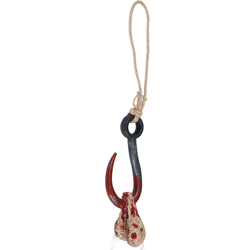 - Gancio insanguinato con realistico dettaglio anatomico che simula testicoli
