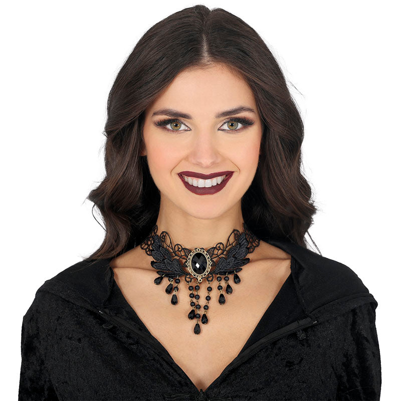 Girocollo ricamato con pietre nere per travestirsi durante le feste spaventosi de Halloween | girocollo gotico con pizzo e pietre è il tocco originale perfetto per completare il tuo costume di paura in modo sorprendente e colorato in qualsiasi evento in maschera horror