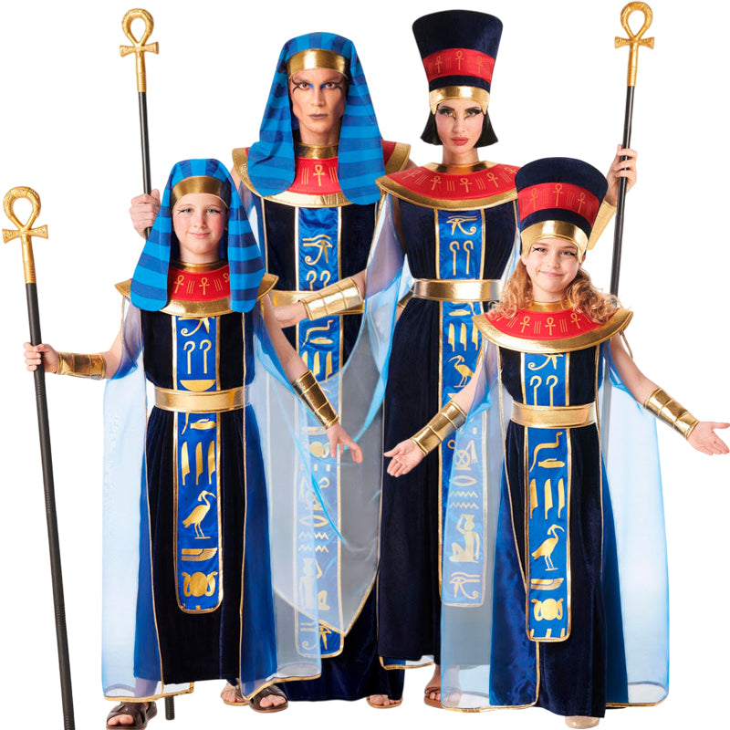 Un'idea fantastica per vestire tutta la famiglia da Egizi in velluto blu con disegni coordinati per uomo, donna, bambino e bambina.È possibile accedere ai contenuti di ciascun costume nella sezione 'Completa il tuo look', dove ogni costume appartenente a questo gruppo è elencato singolarmente.