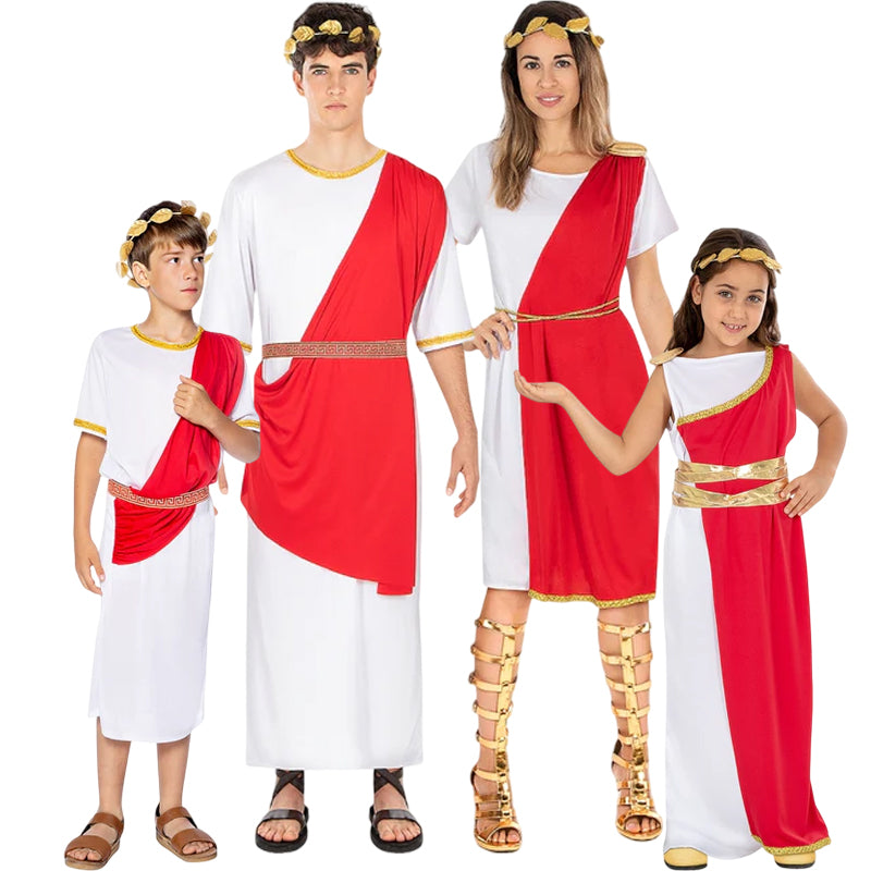 Un'idea fantastica per vestire tutta la famiglia da Governatori romani con design coordinati per uomo, donna, bambino e bambina.