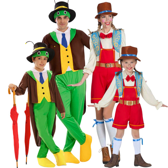 Idea fantastica per travestire tutta la famiglia da Grillo Parlante e Pinocchio con design coordinati per uomo, donna, bambino e bambina. Puoi accedere al contenuto di ogni costume più in basso nella sezione “Completa il tuo look”, dove è indicato ogni costume appartenente a questo gruppo in modo individuale.