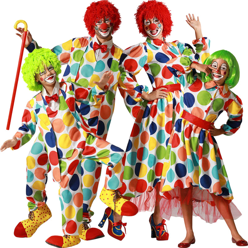 Idea fantastica per travestire tutta la tua famiglia da Clown Divertenti, con modelli coordinati per uomo, donna, bambino e bambina. Puoi accedere al contenuto di ogni costume più in basso nella sezione «Completa il tuo look», dove è indicato ogni travestimento appartenente individualmente a questo gruppo.