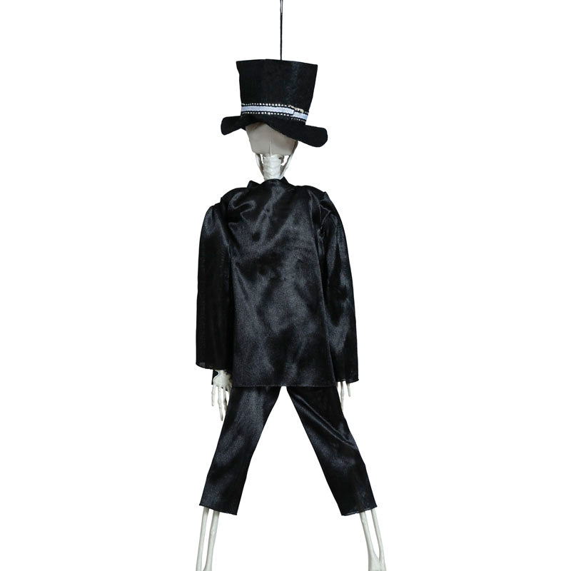 Lo Sposo Scheletro Pendente con Cilindro è il tocco originale perfetto per completare la decorazione in modo tetro e inquietante in qualsiasi evento di costumi spaventosi o festa del terrore.
